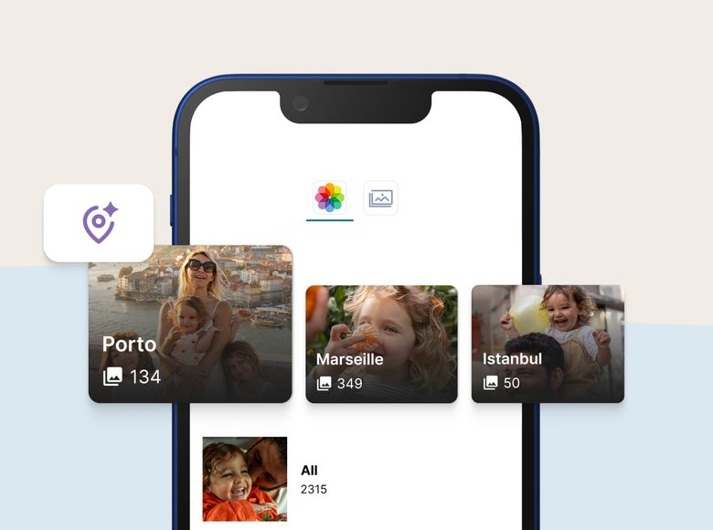 Adiós a rebuscar fotos sin fin. Nuestra herramienta encuentra las fotos de tus últimos viajes en tu galería y las convierte en colecciones listas para usar en tu próximo álbum.