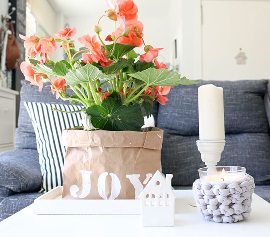 Además, si tienes un poco de paciencia puedes hacerte tus propios maceteros, como el que os enseño en la foto a partir de una bolsa craft que tenía en casa, una vez le quitáis el asa solo tenéis que darle vueltas hasta conseguir la altura deseada.