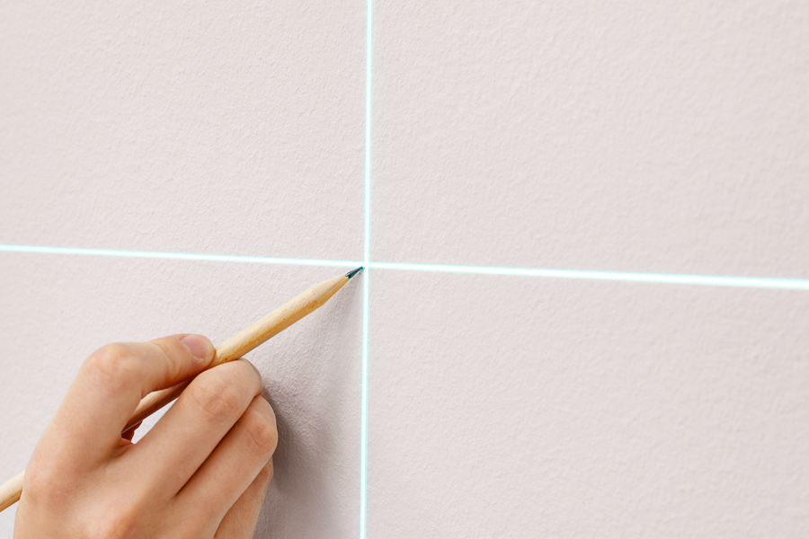 Preparados, listos… ¡a marcar! Coge un lápiz y señala en la pared dónde quieres colgar tu cuadro. Recuerda que la parte de arriba del cuadro quedará un poco por encima de esa marca.