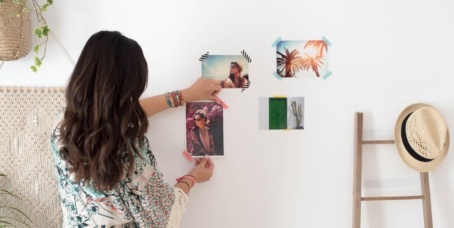 También puedes elegir poner fotos con adhesivos en tus paredes para no dañar tus paredes, aquí te enseñamos cómo crearlos desde tu móvil y con las fotos que más te gusten.