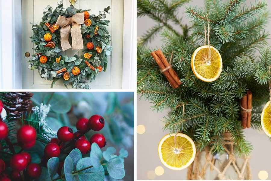 A veces los toques más sencillos son los más sutilmente festivos. La decoración navideña para la casa verde, como las ramas frescas de eucalipto o ingredientes de temporada como rodajas de naranja seca engarzada con canela en rama, quedan bien, huelen todavía mejor y no te hacen pensar «hay que quitarlos inmediatamente después de la Navidad». Además, son sostenibles con lo que todos ganamos.