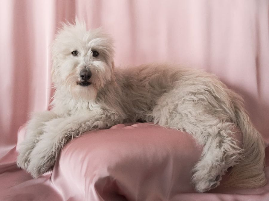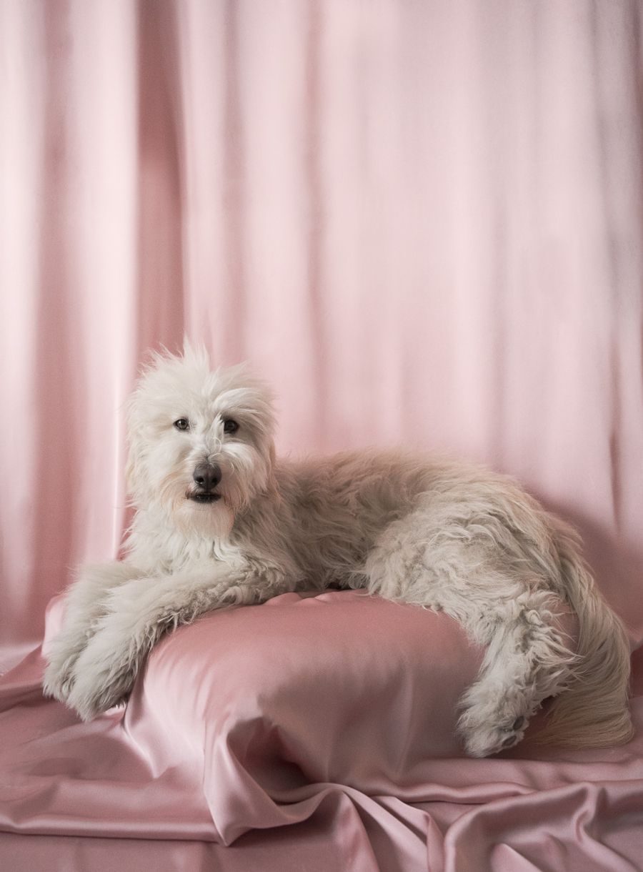 También puedes colocar elementos u objetos por detrás de la tela para darle volumen al set o para que sirvan como puntos de apoyo. En esta ocasión, nosotros hemos puesto un cojín tras el maravilloso raso de color rosa para entronar a este modelo tan especial.