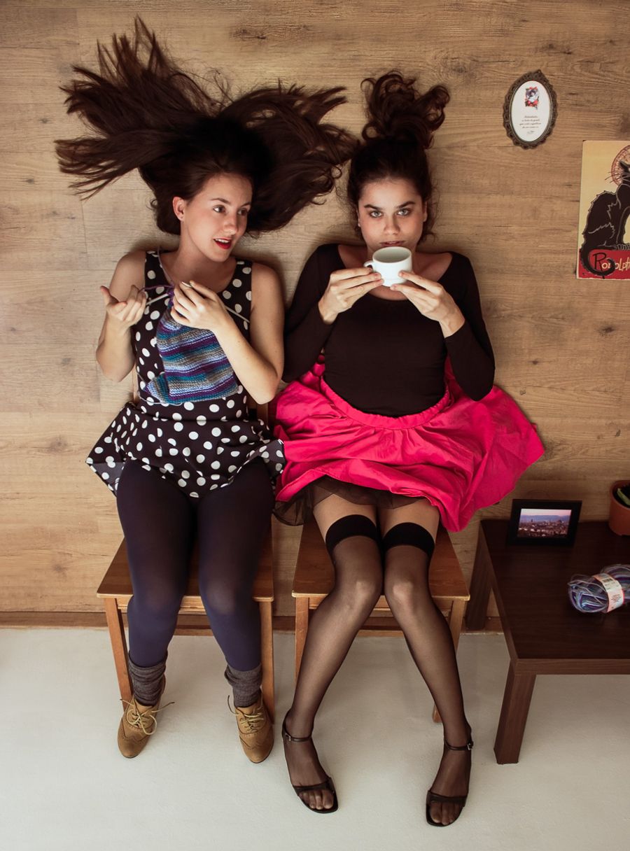 Tanto la ropa como el pelo de las fotografiadas van hacia arriba. Lo hemos colocado así intencionadamente para provocar esa sensación de inestabilidad inmediata al ver la imagen.