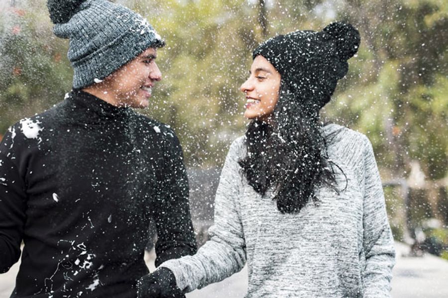 ¿Quieres unas fotos en pareja de tu viaje a la nieve diferentes? Solo necesitarás que alguien lance un poco de polvo de nieve entre el objetivo y vosotros y conseguiréis un efecto tan divertido como el de la imagen. Otra cosa no, pero quedará bien claro que estábais disfrutando de un invierno auténtico.
