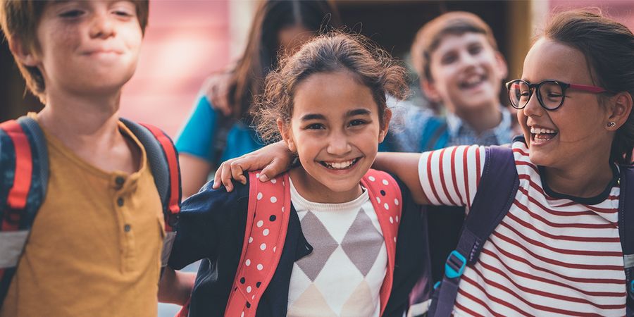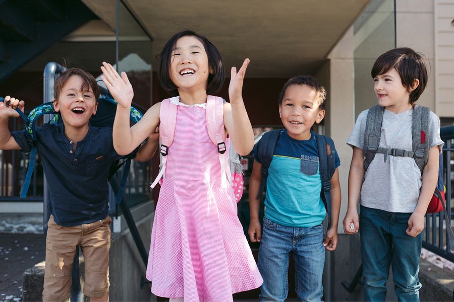 No solo se trata de hacerle fotos en solitario. Algunas de las mejores ideas para fotos del primer día de cole provienen de esas fotos en grupo espontáneas y un poco caóticas. Ya sea con hermanos, primos, vecinos o el mejor amigo del cole, estas fotos en grupo no tienen que estar perfectamente organizadas. Algunas de las mejores fotos del primer día de cole son las más caóticas: mochilas medio puestas, brazos sobre los hombros de los otros y alguien en el aire saltando. Y si haces una foto similar cada año, verás cómo no solo han crecido, sino cómo también han evolucionado sus relaciones.