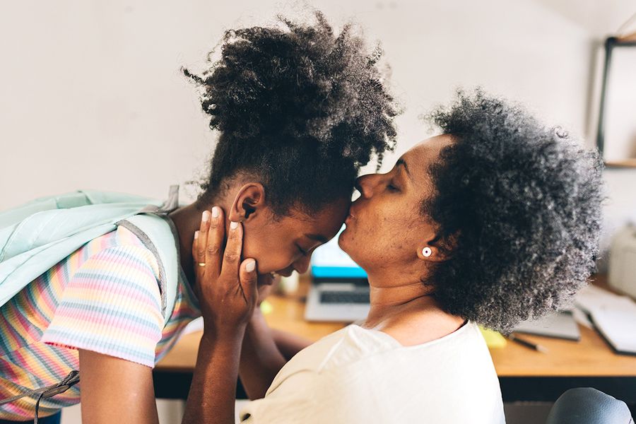 Nuestro consejo para una hacer una foto increíble de padres e hijos en el primer día de cole: usa el temporizador en tu teléfono y colócalo en un lugar estable, como un estante o el alféizar de una ventana. Así saldréis naturales, relajados y con las manos libres.