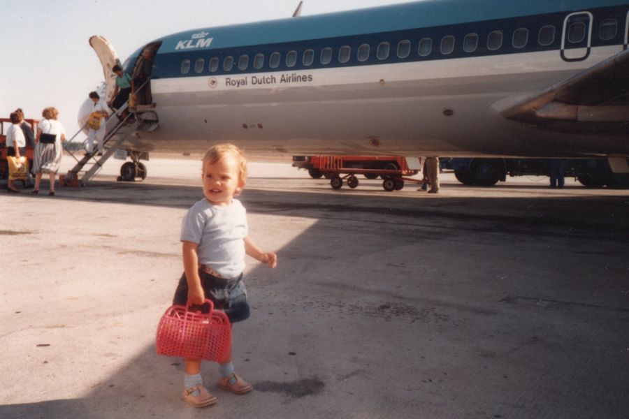 Dónde se hizo la foto: esta foto se hizo en el aeropuerto de Málaga en septiembre de 1985, justo antes de nuestro vuelo de vuelta a Ámsterdam. Estuve de vacaciones con mis padres en Fuengirola y fue la primera vez que me subí a un avión. Tenía dos años.
