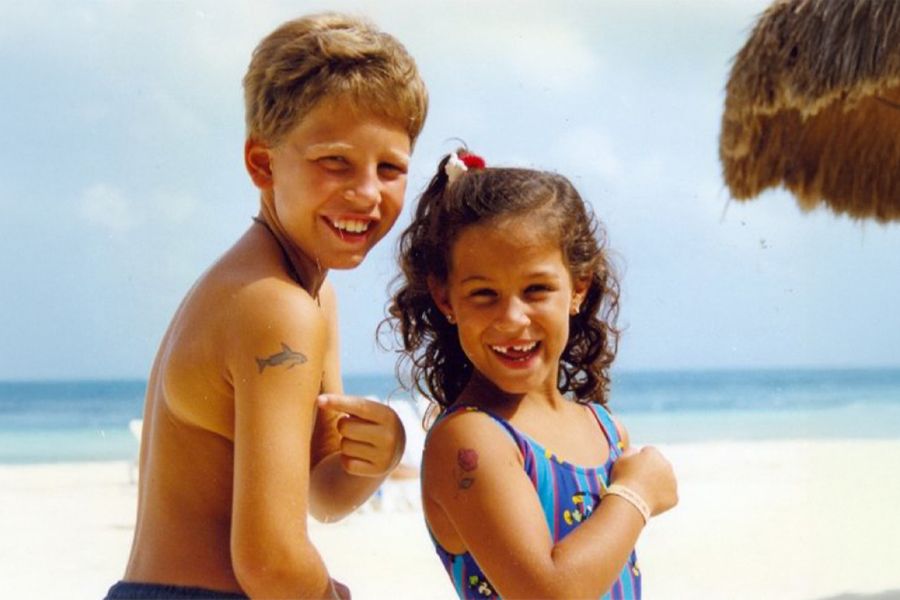 ¿Qué te hace sonreír de esta foto? Me encanta lo orgullosos que estábamos con nuestros «tatuajes». Mi madre se había hecho uno de verdad tan solo unas semanas antes, así que mi hermano y yo estábamos obsesionados con tener el nuestro. Fue uno de nuestros primeros viajes con toda la familia y pensar en aquella época me hace sonreír.
