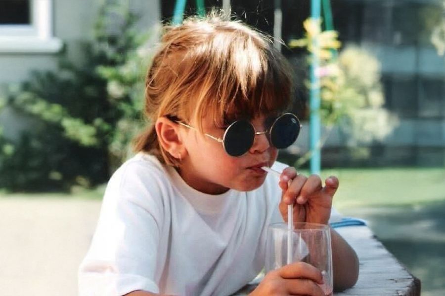 ¿Qué te hace sonreír de esta foto? Me gusta el hecho de que se ve me con las gafas de sol de mi madre y disfrutando de una granadina, una bebida tradicional francesa de jarabe de granada que me encantaba de niña. De niña tenía una seguridad que ya no tengo, ahora es un punto débil mío. Esta foto me recuerda la maravillosa sensación de libertad de la infancia.