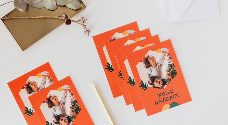 Te aconsejamos que eches un vistazo a nuestras Tarjetas de Navidad personalizadas y que hagas la tuya con una foto de tu propia familia, de tu mascota o de tu árbol de Navidad.