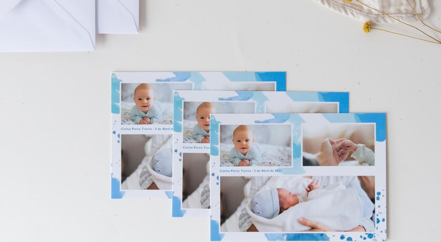 Elige entre tarjetas rectangulares, cuadradas o panorámicas y la composición de la parte delantera (incluso puedes añadir texto para acompañar a la imagen). Sube la foto que quieras y añade un texto a la parte posterior. ¡Será una Tarjeta de Comunión muy especial y única!