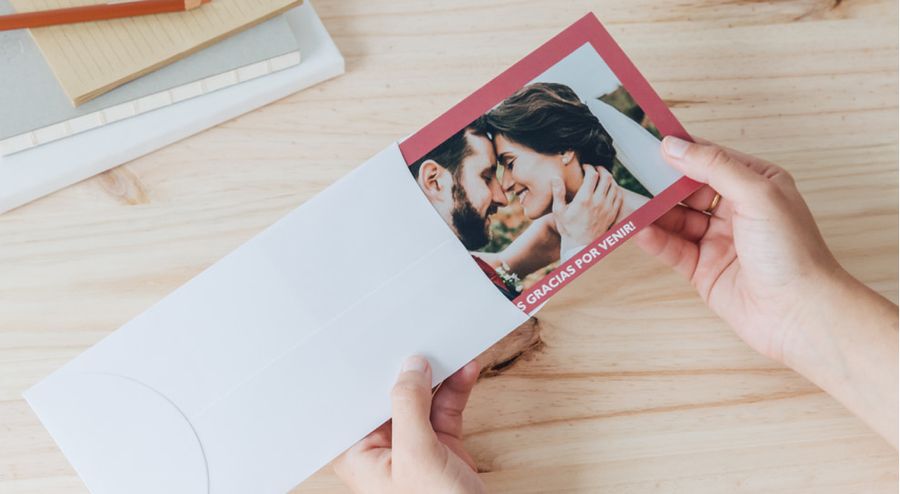Puedes diseñar la tarjeta con algunas de las mejores fotos del evento y/o una foto en grupo de todos los invitados. ¡Será una gran sorpresa y marcarás la diferencia!