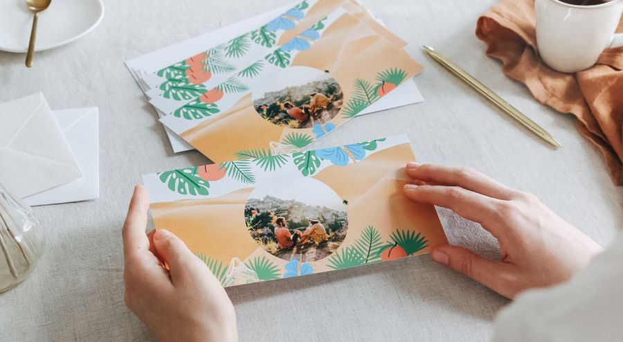 Todo lo que necesitas es crear un solo diseño y las tarjetas llegarán a tu casa en paquetes de 10 y con un sobre blanco individual para cada una.