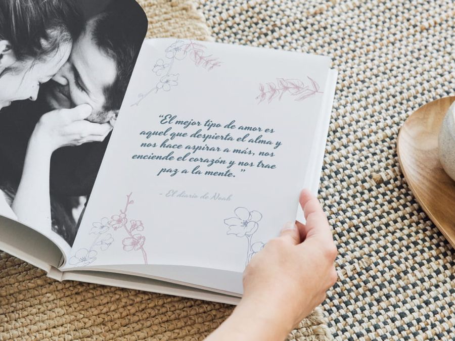 ¿Es vuestro primer aniversario? O ¿simplemente quieres darle a tu pareja una sorpresa con un regalo romántico, único y emotivo? Recopila vuestras mejores fotos juntos en el móvil para crear un álbum de fotos personalizado de lo más romántico. Combínalo con alguna de estas frases para álbum de fotos y citas bonitas, letras de vuestras canciones favoritas o una frase de película.