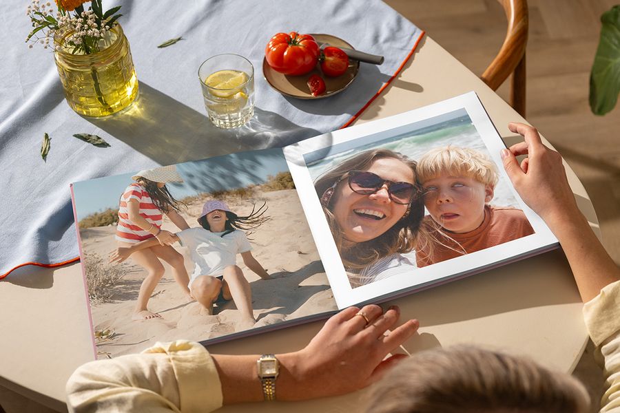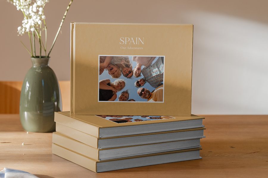 - Estilo: si buscas un álbum de fotos de vacaciones en grupo que pueda resistir con orgullo en tu mesa durante todo el año, la tapa dura es lo más recomendable. Si prefieres algo más ligero y fácil de compartir entre tus compis de aventuras, un álbum de tapa blanda es una opción brillante. ¿Tienes un montón de fotos panorámicas? Opta por la apertura plana para que se impriman a la perfección en una página doble.