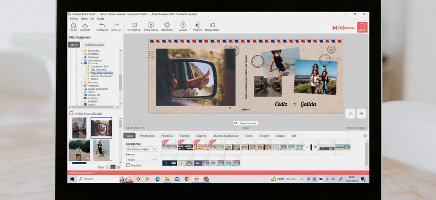 Tenemos un montón de plantillas en nuestro Programa para Windows, donde podrás elegir el diseño que más te guste para colocar tus fotos. Hay plantillas con un estilo más clásico, con el mismo tamaño para cada foto, pero también hay plantillas menos convencionales para que puedas hacer collages o superponer recuerdos como más te guste. ¡Ten en cuenta todas las fotos que vas a usar para no dejarte ninguna! Un consejo: acompaña tus fotos con stickers para crear una historia entre ellas, un hilo conductor que contará y decorará cada página de tu álbum de fotos.