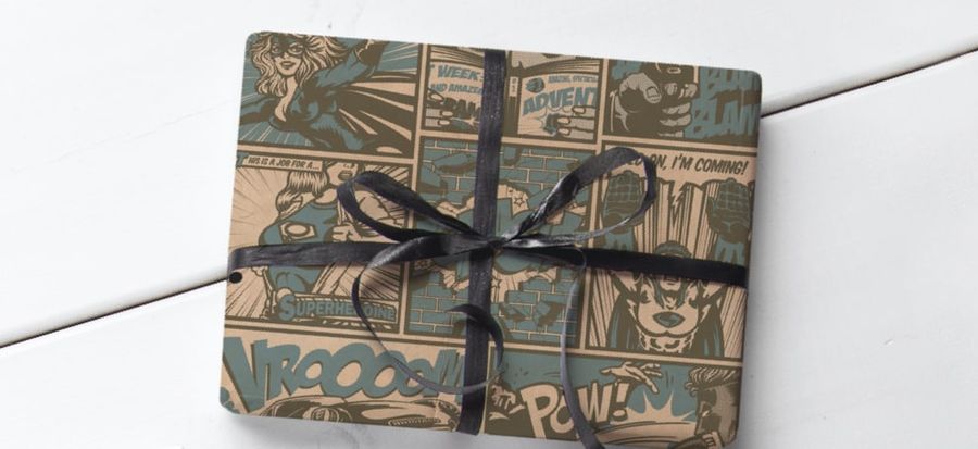Si te preguntas cómo regalar un libro a un amante de los cómics, de historias de aventuras y fantasía, esta opción es para ti. Puedes utilizar viejos cómics para envolver los libros o comprar papel de regalo que simule las viñetas de un cómic.