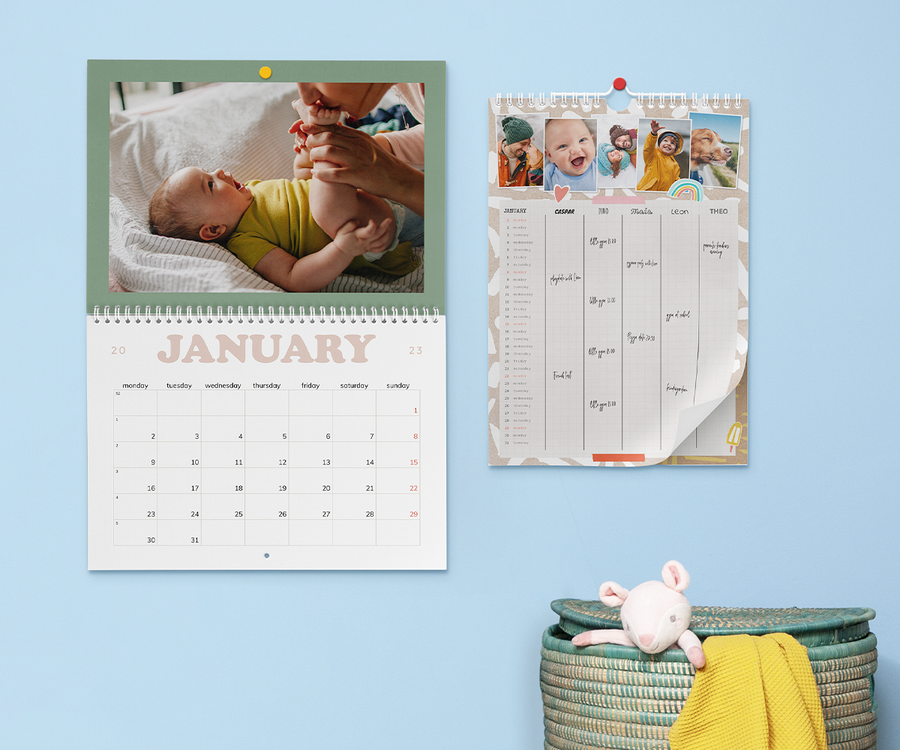 Antes de empezar, es importante pensar para quién vas a crear el calendario. Esto ayuda a elegir las fotos y el diseño que hará más ilusión. Nuestros calendarios pueden empezar en cualquier mes del año, así que son un regalo estupendo durante todo el año. Si vas a crear uno para ti, piensa en dónde lo colgarás. A continuación, empieza a pensar qué aspecto quieres que tenga el calendario en general.