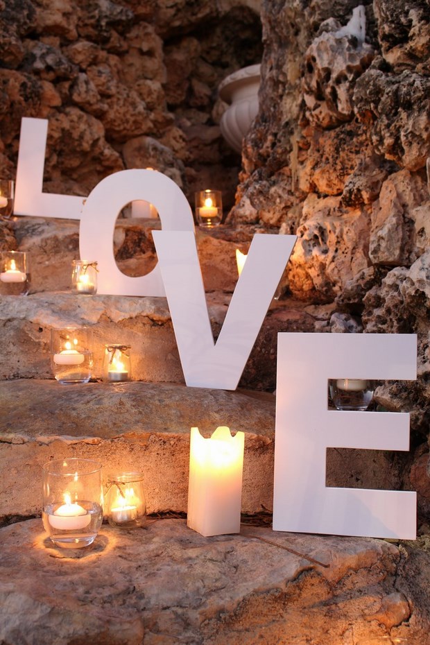 En un decálogo de bodas no puede faltar la mención especial a las velas, una luz suave y romántica que no puede faltar. Puedes ponerlas en rincones, en los centros de mesa junto las flores o en el suelo.