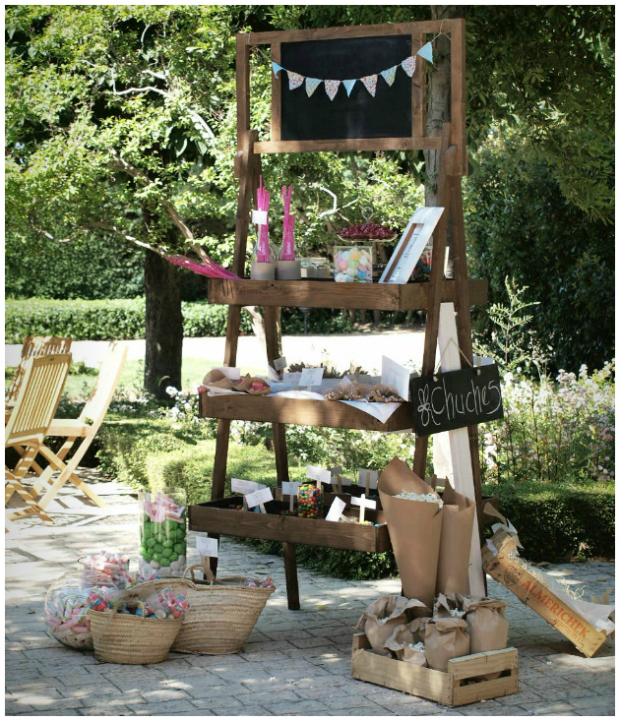 4. Haz un buffet de chuches. Ni te lo pienses, sí, azúcar a go-gó pero seguro que les encantarán y más de un mayor también picará. Yo personalmente soy de las que me encanta pasarme por la zona chuches a quitarles a los peques algunas. Incluso puedes hacer pequeños botes personalizados.