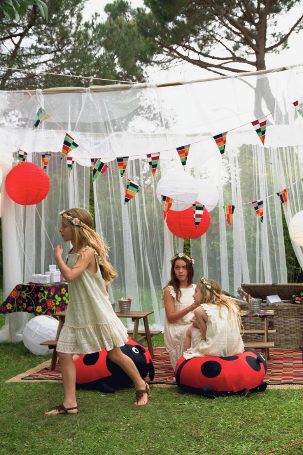 2. Zona de niños, padres no permitidos. Hacer una zona de este tipo no tiene que salirte caro. Puedes llevar juguetes que tengas en casa, unos cojines, unas mesas, juegos de mesa y una pelota, si hay verde es imprescindible. Lo fundamental es que tengan variedad, elijan y estén entretenidos mientras tú te dedicas a saborear un buen aperitivo.