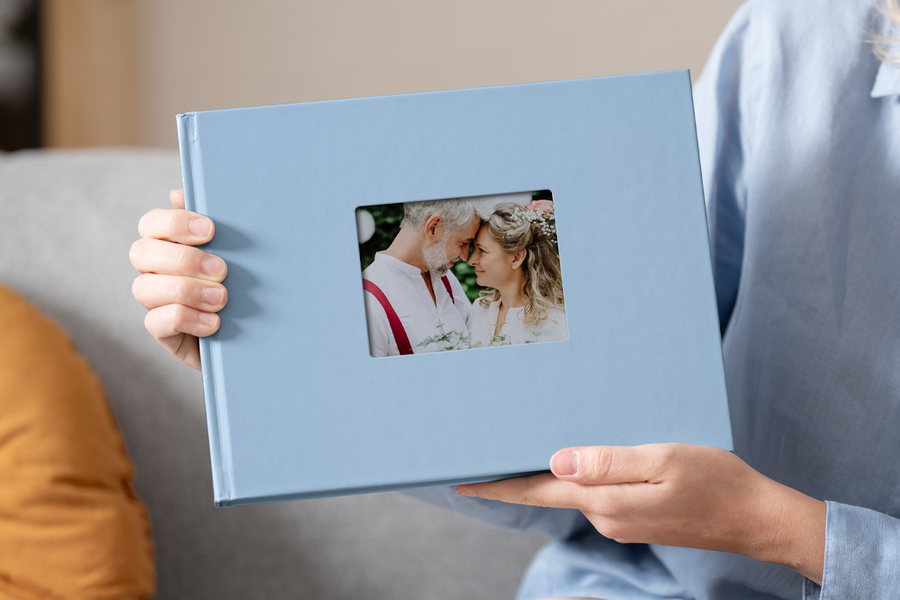 Si tu día especial era de temática rústica, con luces de colores y banderines fabricados con cuerda, este es tu álbum. Presentamos el álbum de fotos con ventana, el compañero perfecto para todas las fotos del día de tu boda. Su tapa con ventana le da un acabado de gran calidad, divertido pero clásico. Toda la familia querrá reunirse alrededor de la mesa para hojearlo y, puesto que la tapa es mate, incluso los pequeñajos pueden tocarlo. ¿Galería del móvil llena? No hay probema, este álbum de boda incluye hasta 120 páginas.