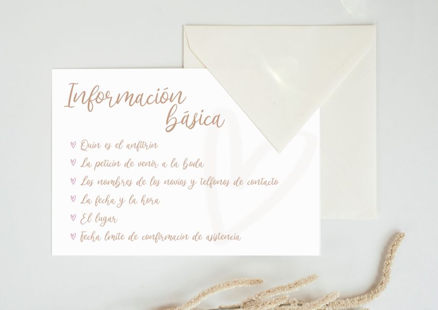 De todos modos, no podemos olvidar que la invitación de boda tiene una función informativa y hay información que no debe faltar: