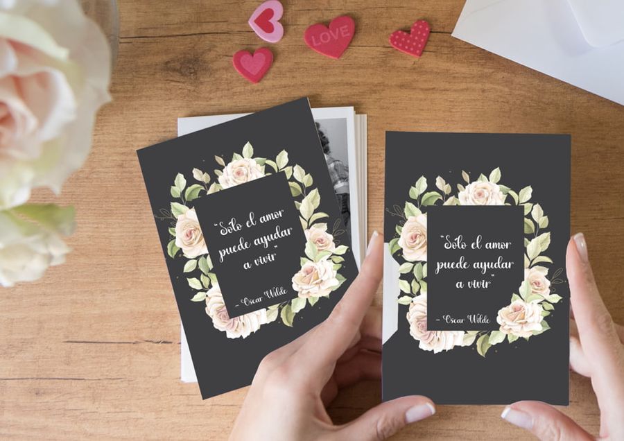 Si hay un libro o autor que os identifique como pareja, esta idea es perfecta para crear vuestras invitaciones de boda. La literatura está llena de mensajes románticos y seguro que hay uno que siempre recordáis. Te dejamos algunos ejemplos: