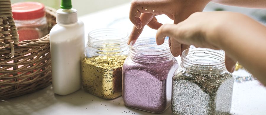 Unas garrafas, sal y purpurina. Es todo lo que necesitamos para esta manualidad que relajan un montón 🙂 Ideal para la hora de la siesta. Cortad la parte inferior de una garrafa y llenadla de sal. Podéis jugar con ella a hacer distintas formas, montañas, escribir letras… A los niños les encanta dibujar en todo tipo de superficies y ésta es especialmente divertida. Si les gusta la purpurina (seguro que sí) podéis jugar con ella a mezclarla y crear distintas dunas. Veréis cómo cambian los colores y lo chulo que os queda vuestro paisaje.