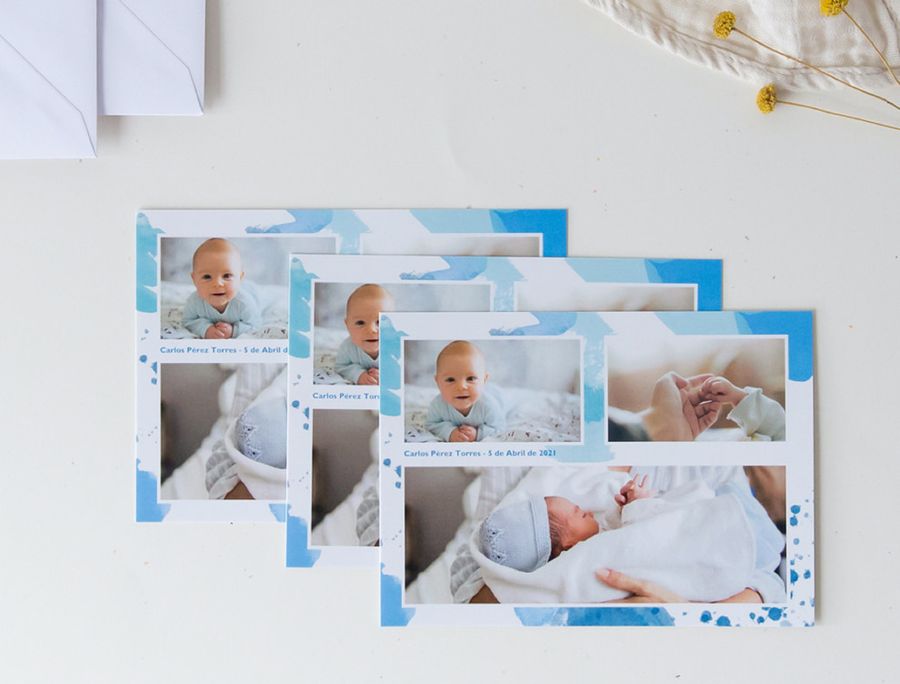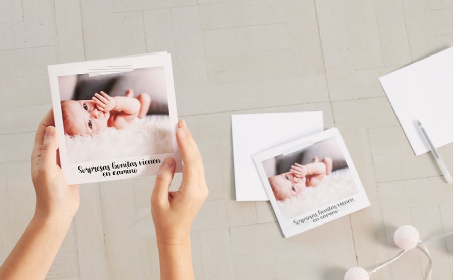 🔮Recomendación: puedes crear tus propias tarjetas para bebés aquí. Podrás elegir entre tarjetas rectangulares, cuadradas o panorámicas, plegables o sin plegar. Te llegarán en paquetes de 10 tarjetas + 10 sobres blancos relucientes en una caja de tarjetas de colores, y se las podrás ir dando a los padres cada vez que te encuentres con ellos personalizando a mano alguna frase cada día.