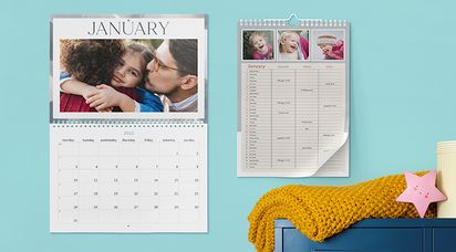 • Calendario de pared: Crea tu calendario de pared personalizado en A3, A4o A5. 1: elige el tema que más te guste. 2: selecciona tus fotos favoritas. 3: ¡disfrútalo cada día!