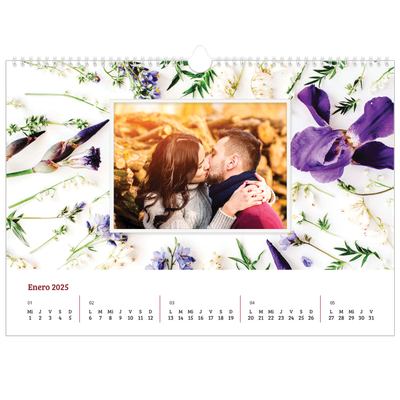 - Selecciona un diseño: Desde motivos florales hasta tonos llamativos, explora más de 100 opciones de diseño y complementa tus fotos con un calendario apaisado impresionante.