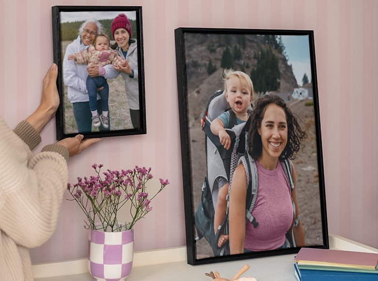 Supérate en los regalos del Día de la Madre con un cuadro personalizado. Tanto si es un poster personalizado con un acabado brillante como un /foto lienzo atrevido con textura, los cuadros personalizados son la forma perfecta de actualizar su espacio y exhibir sus recuerdos favoritos de forma original.