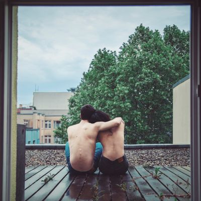Julia y Ulises se conocieron a través de amigos en común, durante una cena en febrero de 2020. Comenzaron a verse, a salir, a descubrirse en Berlín. Llegó la pandemia: viven en la otra punta de la ciudad uno del otro… Julia está en Neukölln, en el sur, y Ulises en Wedding, unos 12 kilómetros más arriba, en el norte de la ciudad. Durante aquellos meses de 2020 mantuvieron el contacto gracias a las nuevas tecnologías, se apoyaron, se cuidaron y compartieron sus miedos e inquietudes. Tuvieron tiempo de contarse la vida. Pero echaban de menos ese abrazo. A partir de junio, que fue cuando tomé esta fotografía, pudieron reencontrarse en casa de él. El amor emergente se mantuvo intacto entre ellos. Pudieron seguir conociéndose: “Parecía que fuera ayer”.